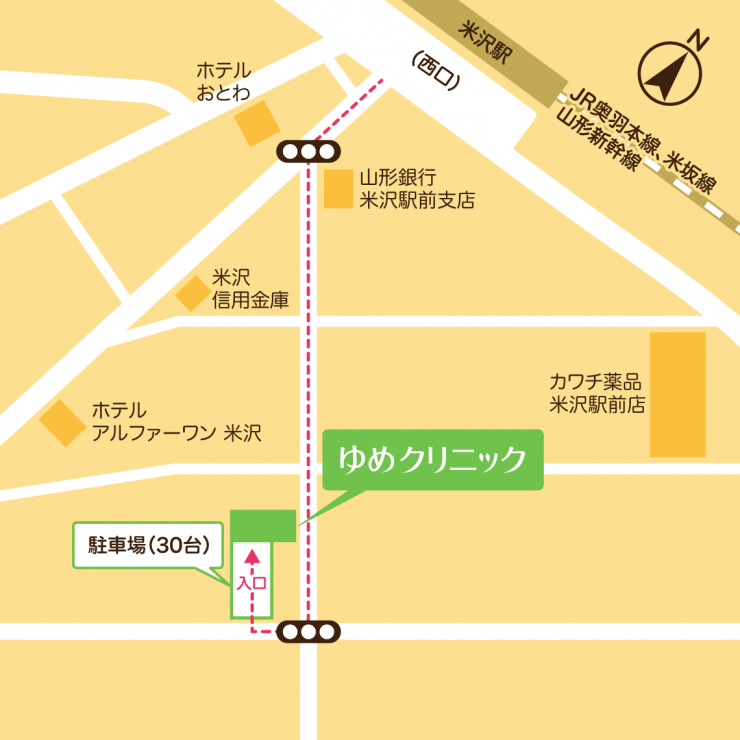 - JR奥羽本線、米坂線、山形新幹線「米沢駅」下車 徒歩5分